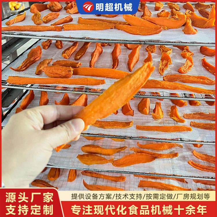 红薯加工红薯干流水线 智能控制的流水线通常涵盖清洗、去皮、切块、蒸煮、烘干、包装等核心环节。烘干房作为一种可控的干燥设备,通过调节温度、湿度等参数,能够